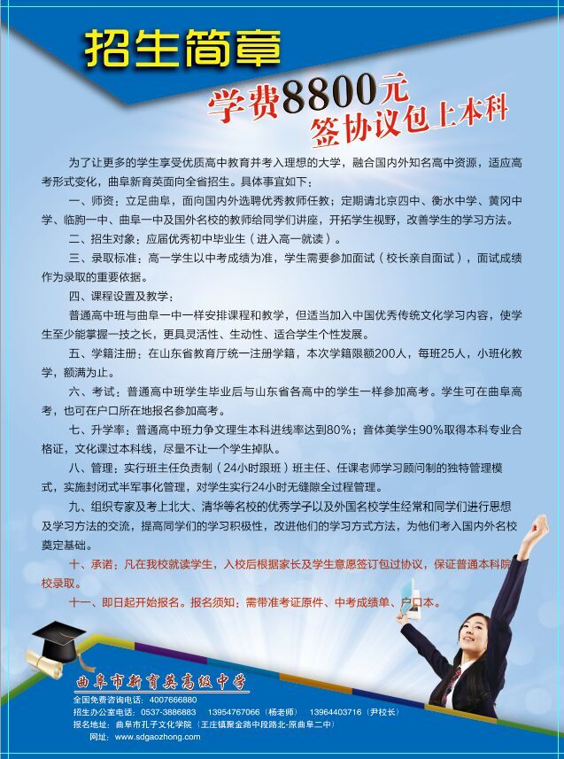 招生办公室:0537-3886883 13954767066(杨主任) 13964403716(尹校长)